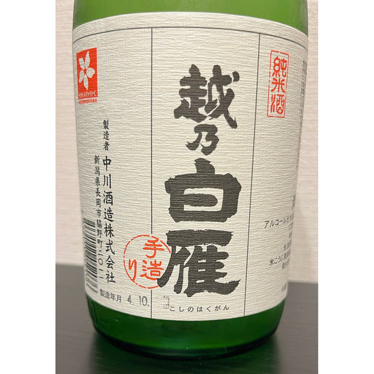 越乃白雁 純米酒 コシヒカリ 720ml 中川酒造株式会社