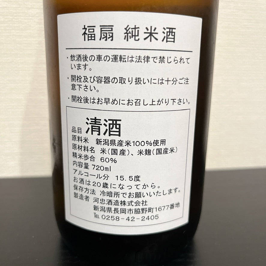 福扇(ふくせん) 純米酒 720ml 河忠酒造株式会社